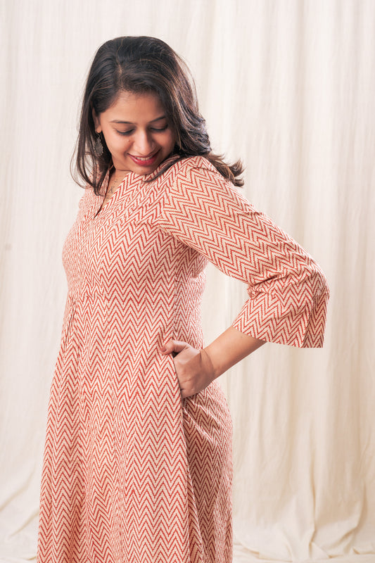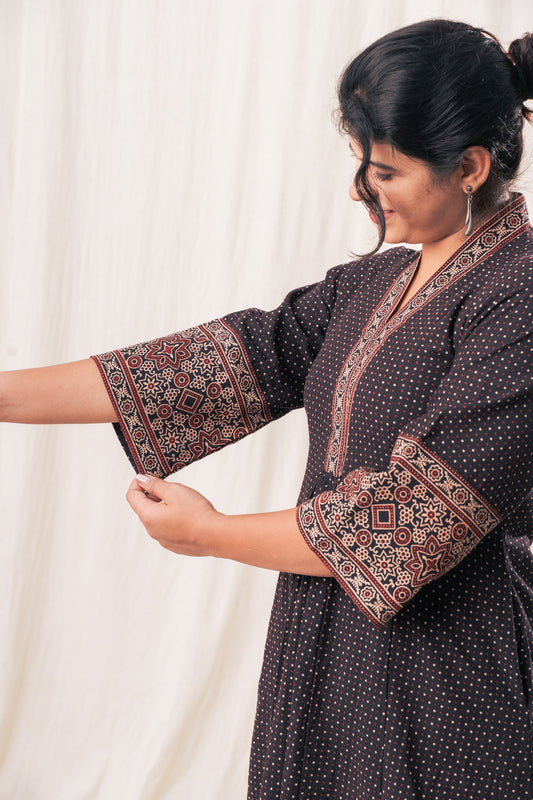 V neck Ajrakh polka Gathered Set