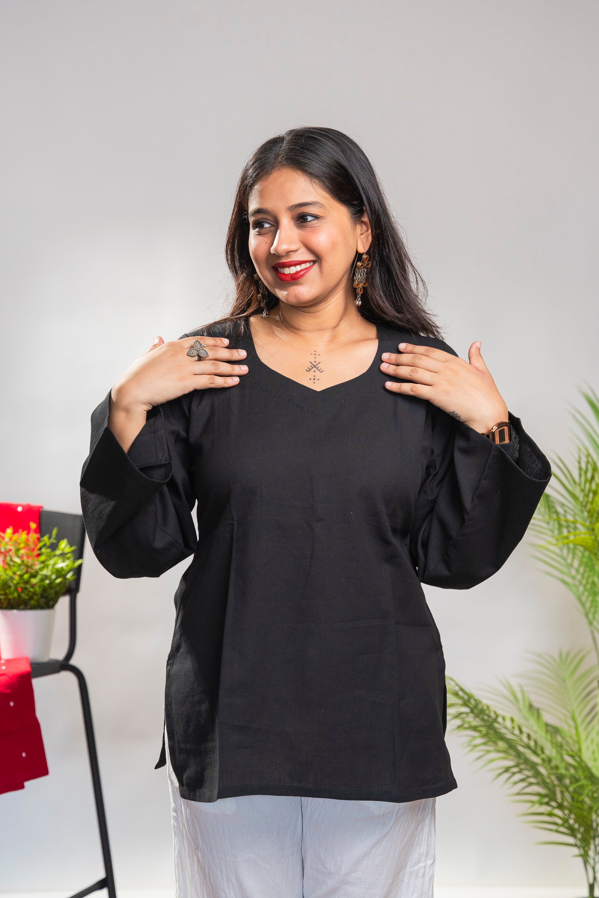 Black Short Kurti with full sleeves